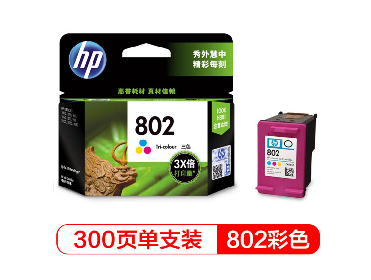 惠普(HP)CH564ZZ 802高容彩色墨盒(适用HP Deskjet 1050/2050/1010/1000/2000/1510/1511)