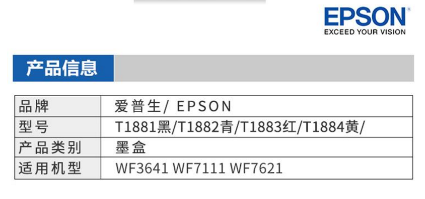商品名称:爱普生(EPSON)T1884 黄色墨盒 适用WF3641/WF7111/WF7621