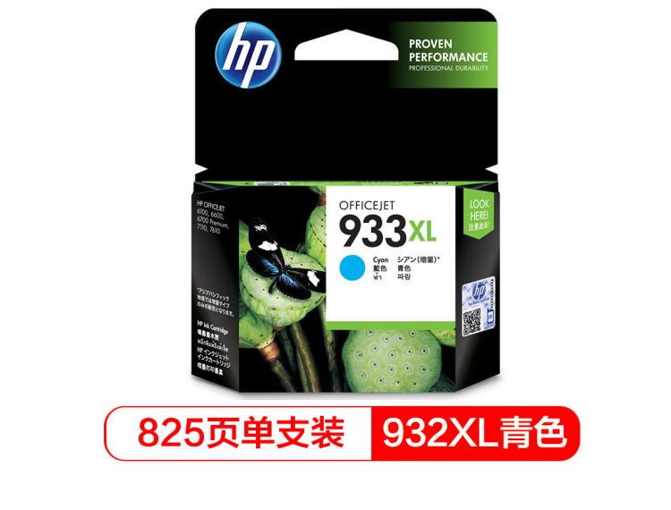 商品名称:惠普(HP) CN054AA 933XL 超大号 Officejet 青色墨盒 (适用HP Officejet 7110/7610/7612)