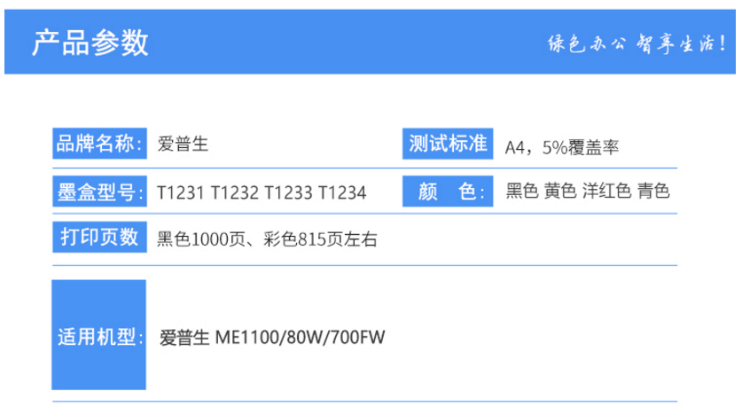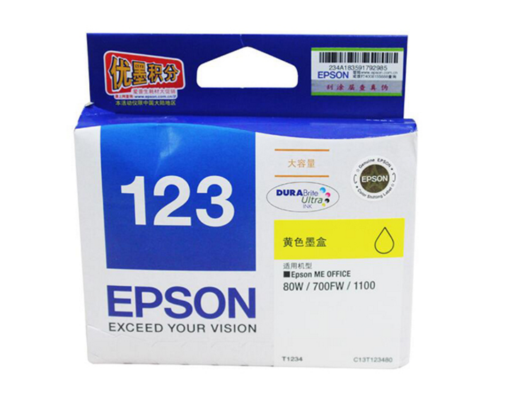 商品名称:爱普生(EPSON)T1234黄色墨盒 (适用80W 700fw机型)