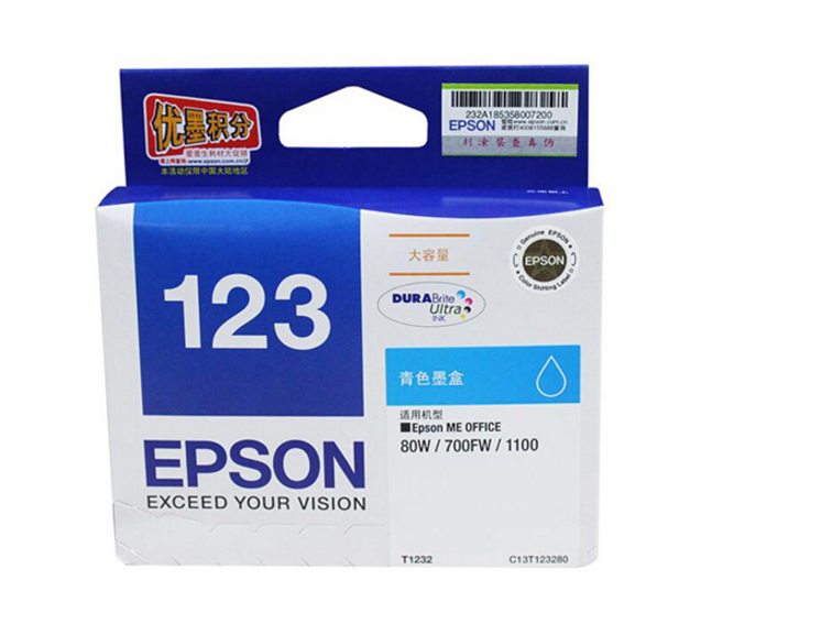 商品名称:爱普生(EPSON)T1232青色墨盒 (适用80W 700fw机型)