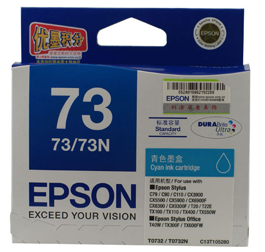 爱普生(Epson)T0732青色墨盒 C13T105280(适用CX5500/5900/8300/9300)