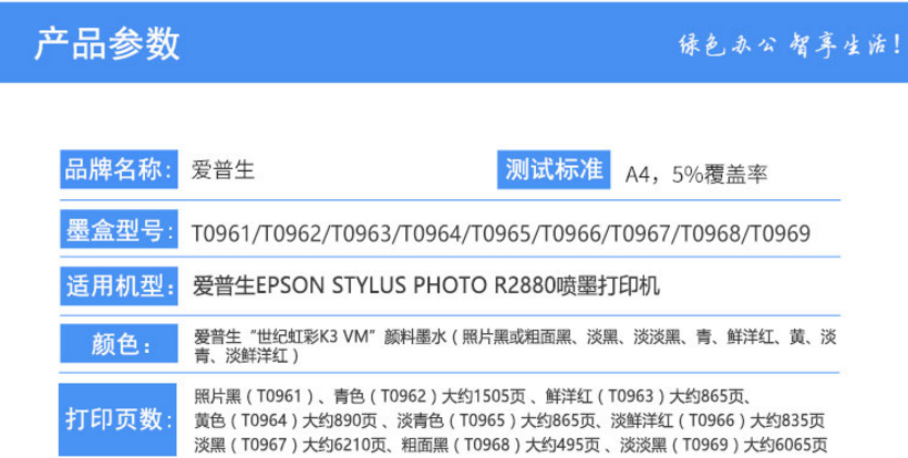商品名称:爱普生(EPSON)T0961~0969墨盒套装 共9色 (适用R2880机型)