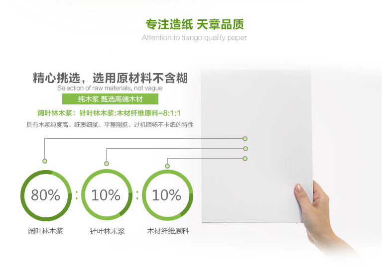 商品名称:天章 新绿天章 A4 70g 复印纸 白(500张/包)