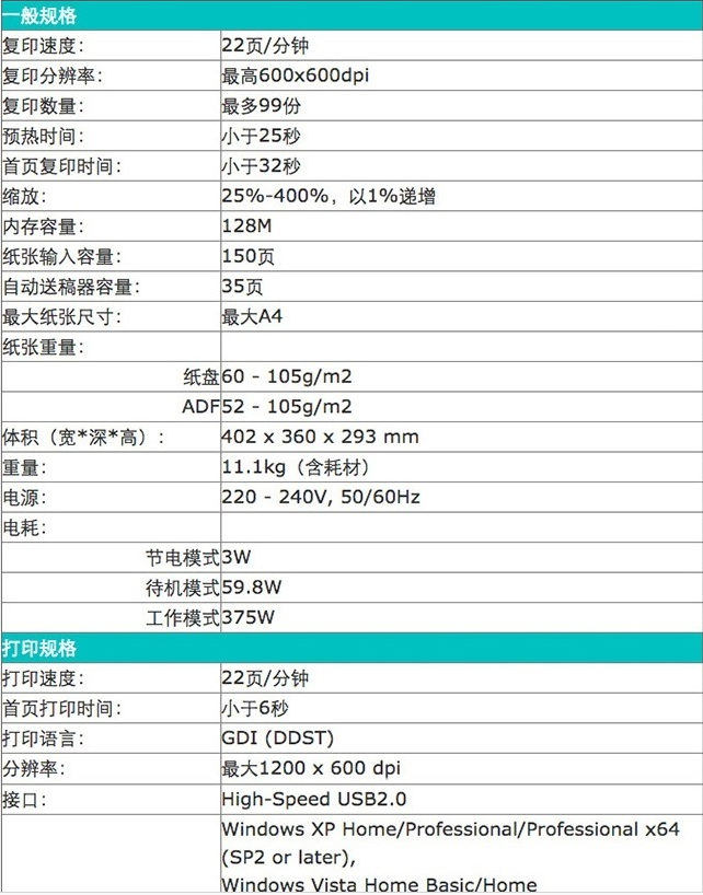 商品名称:理光SP210SFQ激光打印机一体机