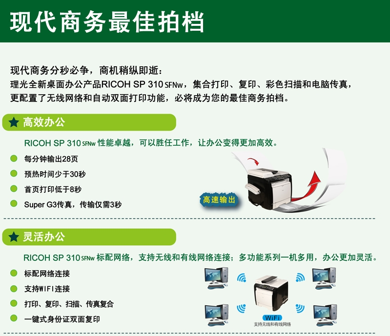 商品名称:理光SP310SFNW黑白激光多功能一体机