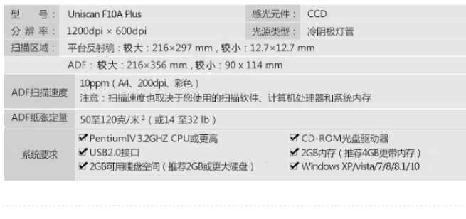 商品名称:紫光(UNIS)Uniscan F10A高速扫描仪