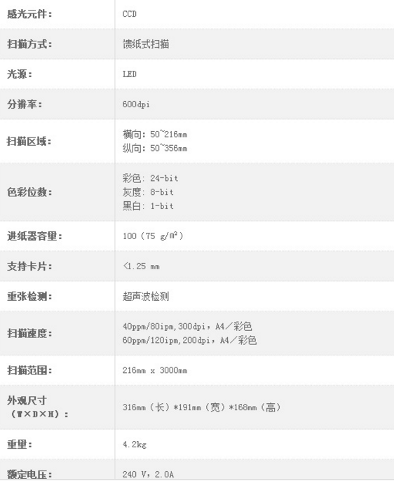 商品名称:紫光(UNIS) Q2240 扫描仪 高速馈纸式自动送稿高速 A4