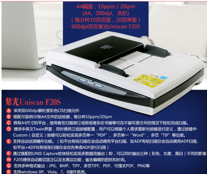商品名称:紫光(UNIS) Uniscan F20S 高速扫描仪