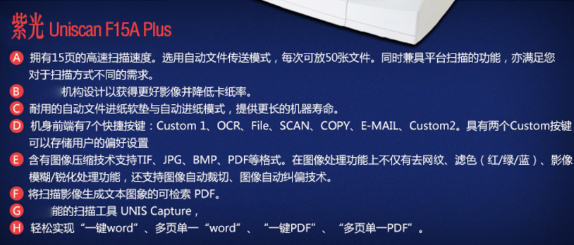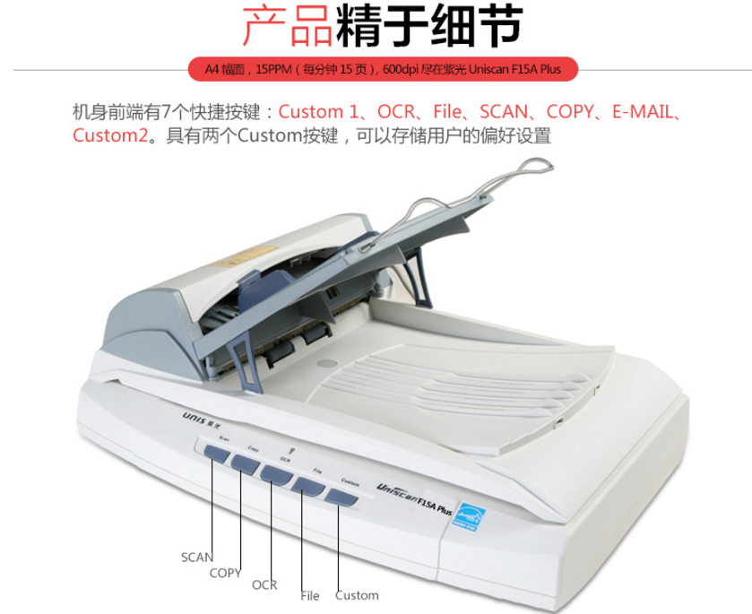 商品名称:紫光(UNIS) Uniscan F15APlus 扫描仪A4彩色高速自动进纸平板ADF