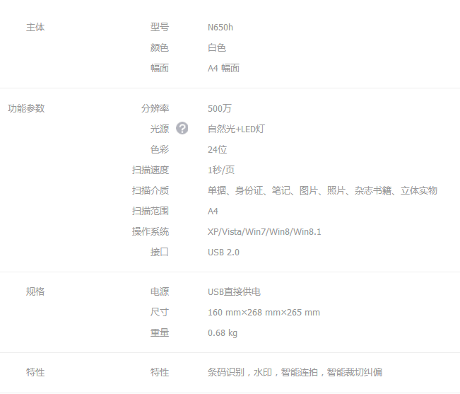 商品名称:紫光(UNIS)N650h 高拍仪彩色高清拍摄仪