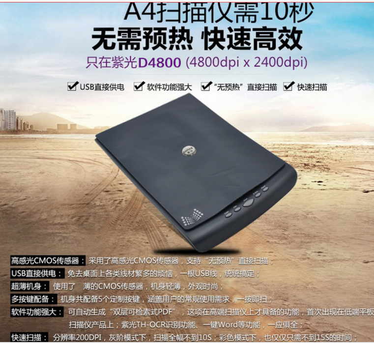 商品名称:紫光(UNIS)D4800 CIS扫描头A4平板扫描仪 高清扫描仪