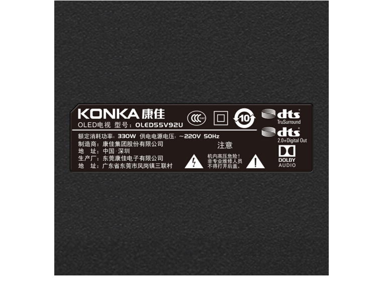 商品名称:康佳(KONKA)OLED55V92U 55英寸 OLED有机电视机 4.7mm纤薄机身 4K超高清 人工智能 MEMC 2GB+16GB
