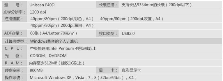 商品名称:紫光(UNIS)Uniscan F40D (ADF+平板)扫描仪