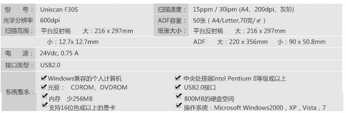商品名称:紫光(UNIS)Uniscan F30S扫描仪A4高速彩色自动进纸平板