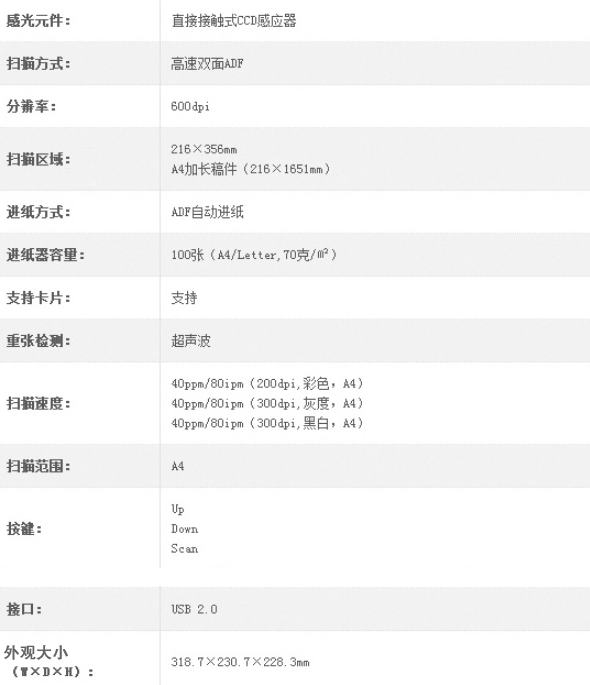 商品名称:紫光Q400彩色双面高速扫描仪 双CCD ADF