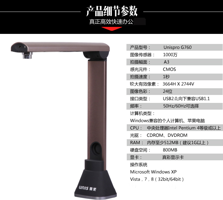 商品名称:紫光(UNIS)Unispro G760高拍仪高清高速A3幅面1000万像素