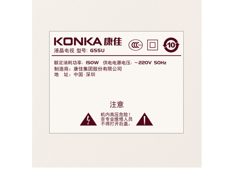 商品名称:康佳(KONKA) G55U 55英寸 超薄无边框 26核4K超高清MEMC智能电视
