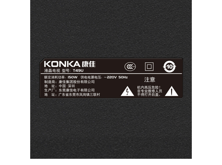 康佳(KONKA) T49U 49英寸4K超高清64位10核安卓智能平板液晶电视(黑)