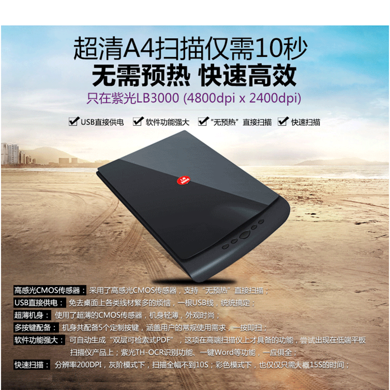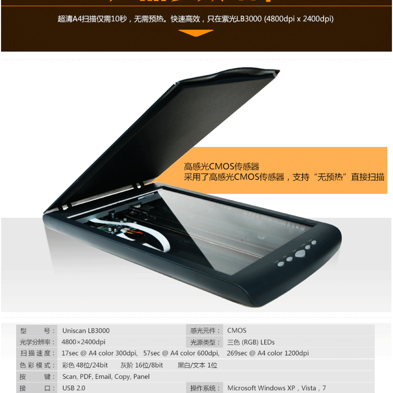 商品名称:紫光(UNIS) LB3000 平板扫描仪 USB直接供电