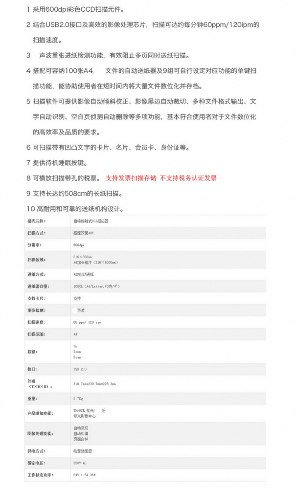 商品名称:紫光(UNIS)Uniscan Q600 高速双面ADF扫描仪