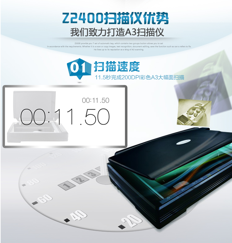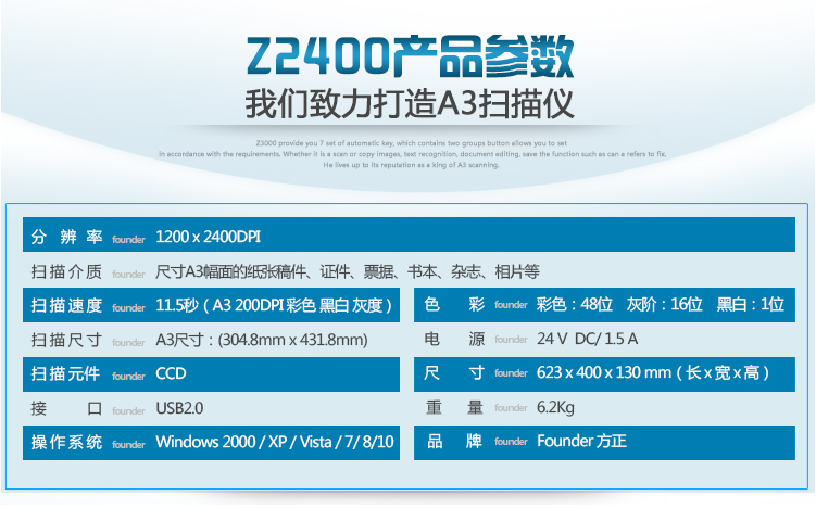 商品名称:方正(Founder)Z2400扫描仪A3大幅面平板彩色快速CCD