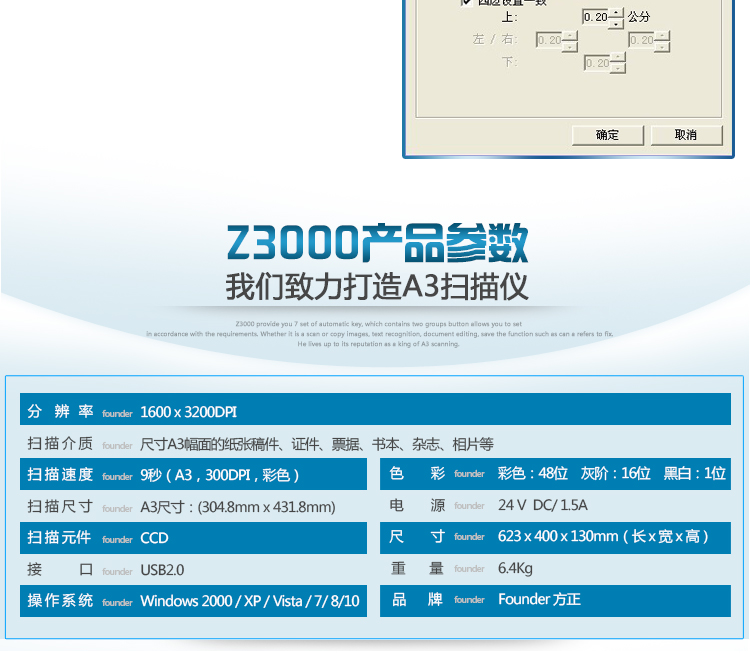 商品名称:方正(Founder)Z3000扫描仪A3大幅面平板彩色快速CCD