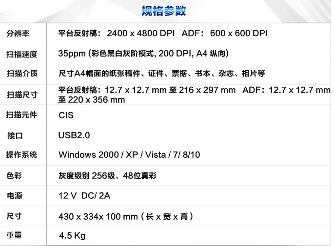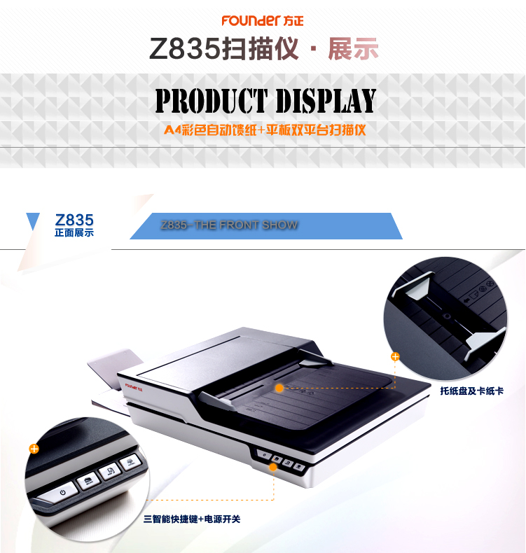 商品名称:方正(Founder)Z835扫描仪A4彩色高速自动进纸平板