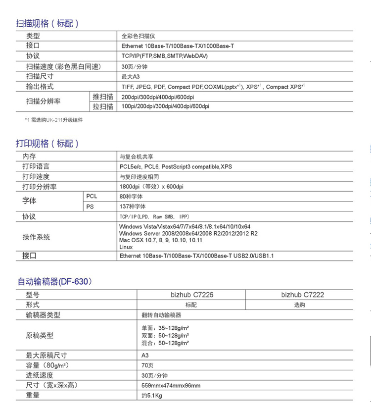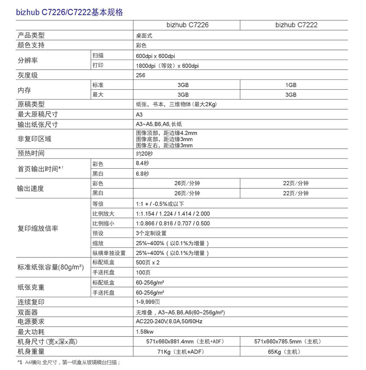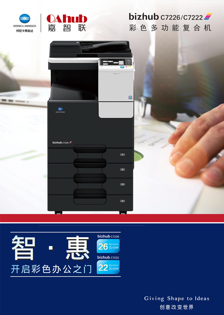 商品名称:柯尼卡美能达C7222复合机黑白激光数码多功能A3柯美复印机(复印打印扫描)美能达原装碳粉 标配+双面器+输稿器+网络 双层纸盒+1盒碳粉