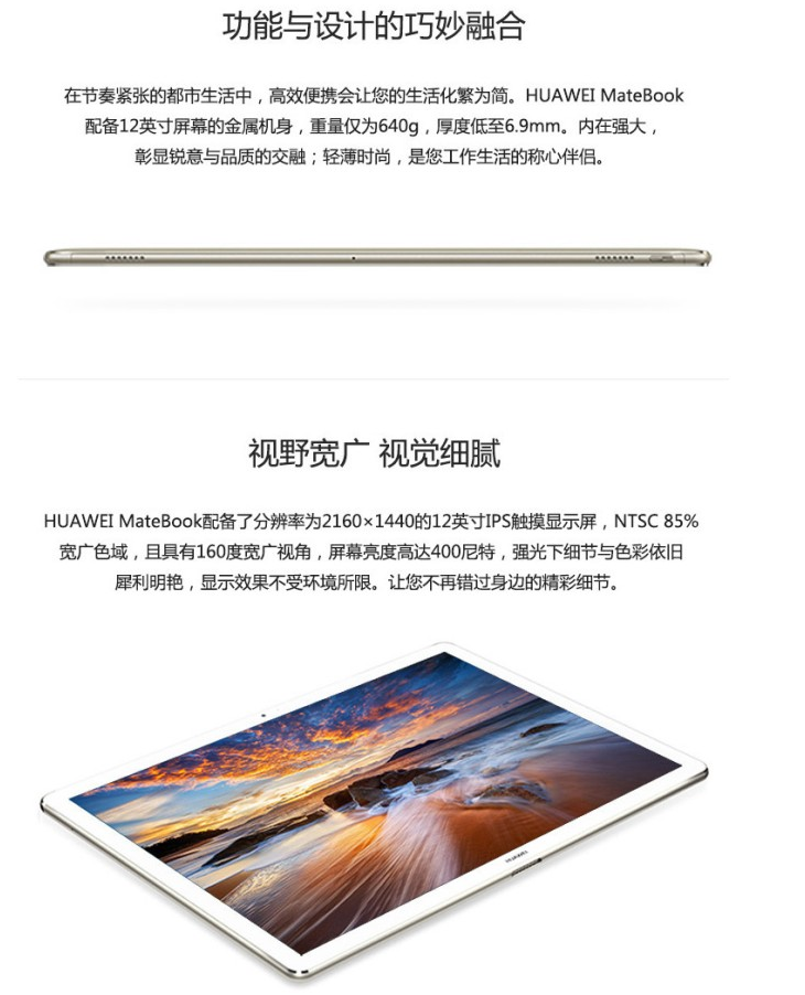商品名称:华为 MateBook 12英寸平板二合一 笔记本电脑 (Intel core m3 4G内存 128G存储 键盘 Win10) 太空灰