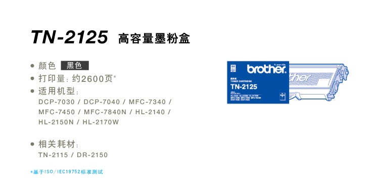 商品名称:兄弟(brother) TN-2125 黑色高容墨粉仓 (适用HL2140 2150N DCP7030,MFC7450/7340)