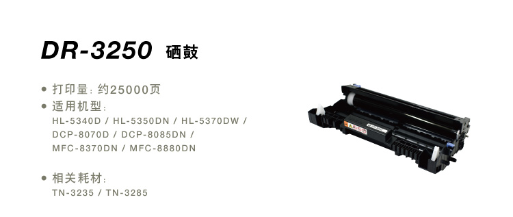 商品名称:兄弟(brother)DR-3250黑色原装硒鼓(适用HL-5340D/5350DN/5370DW/DCP-8085DN/MFC-8880DN)