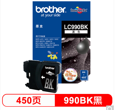 商品名称:兄弟(brother) LC990BK 黑色墨盒(适用DCP-145C/165C/385C/MFC-250C/290C/490CW/790CW/5490CN)