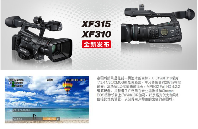 商品名称:佳能(Canon)XF315 专业高清数码摄像机