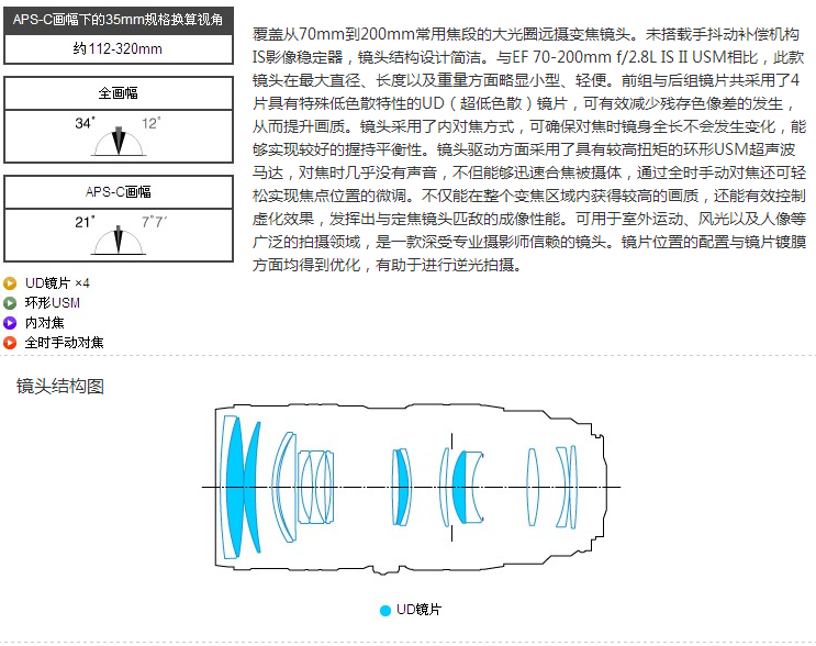 佳能(Canon) EF 70-200mm f/2.8L USM 远摄变焦镜头
