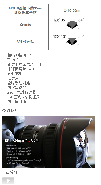 商品名称:佳能(Canon)EF 11-24mm f/4L USM