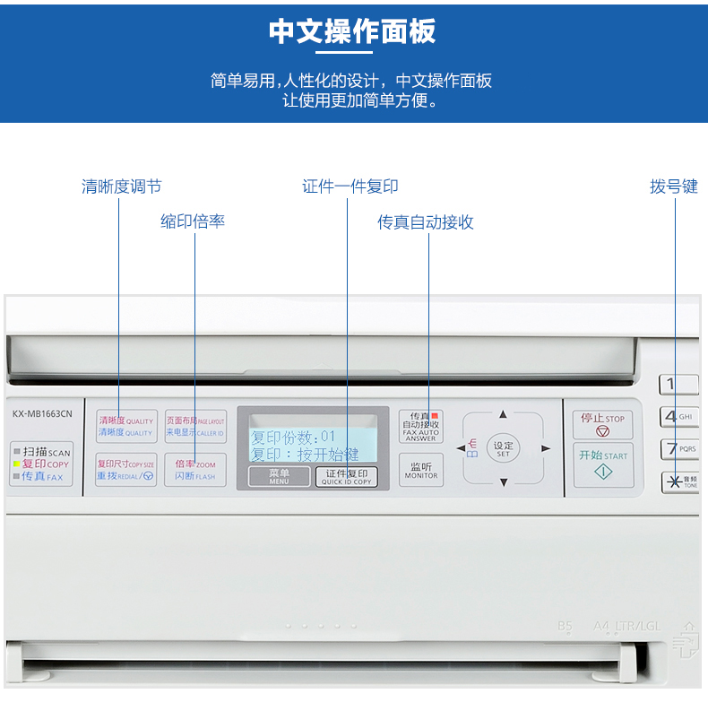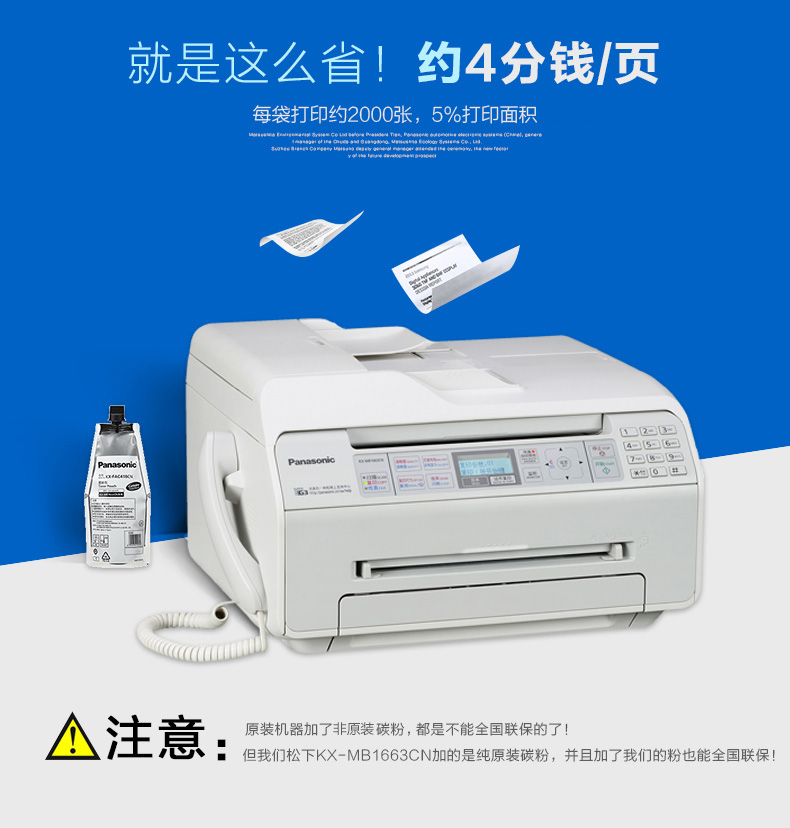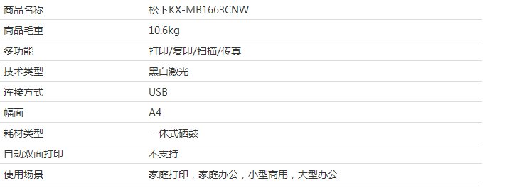 商品名称:松下(Panasonic)KX-MB1663CNW 多功能一体机