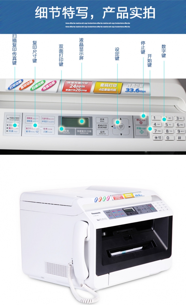 商品名称:松下KX-MB2128CN黑白激光双面打印传真机一体机