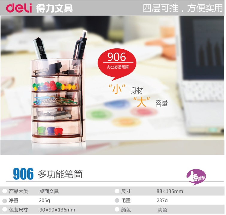 得力笔筒906