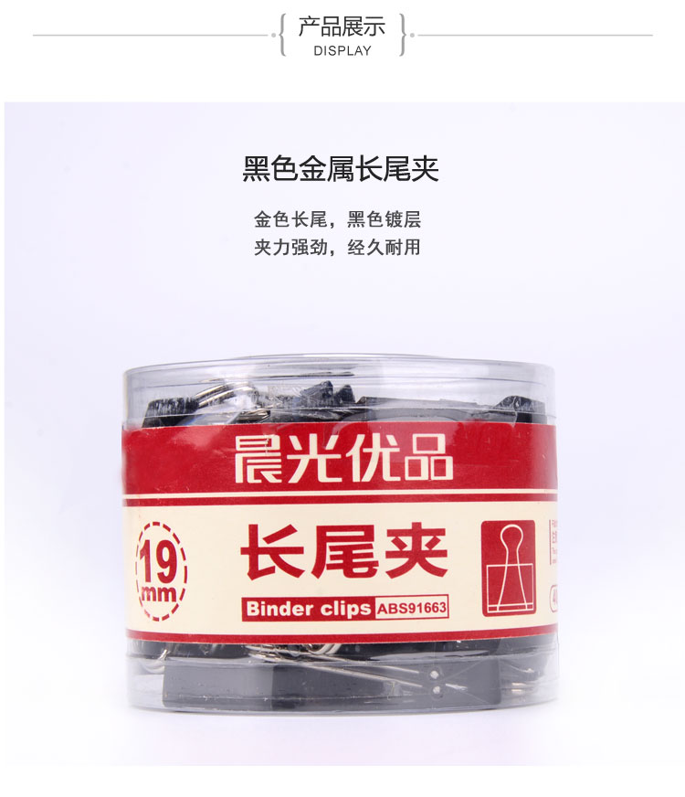 商品名称:晨光黑色长尾夹ABS91662