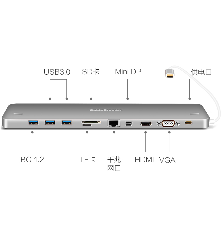 商品名称:科睿讯CABLE CREATION Type-C转接头 USB-C转HDMI/VGA/MiniDP转换器 苹果电脑网线口扩展坞 HUB集线器拓展坞CD0396