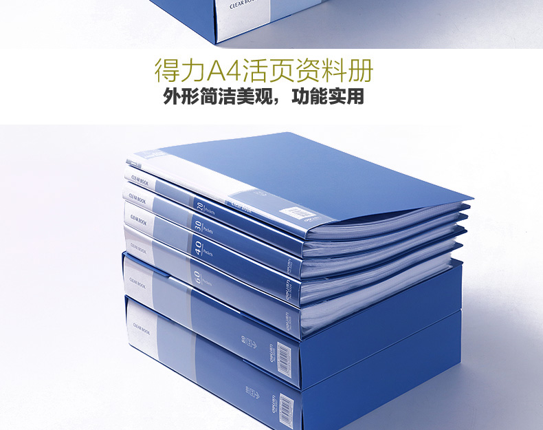 得力 5002 经济型A4/20页资料册 蓝色 12个装
