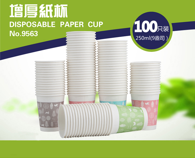 商品名称:得力9563 加厚型一次性水杯/纸杯9盎司 250ML 100只装四色入