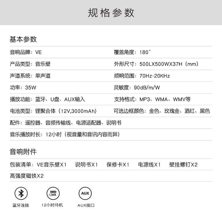 VE音乐壁E50D产品尺寸:500LX500WX37H(mm)