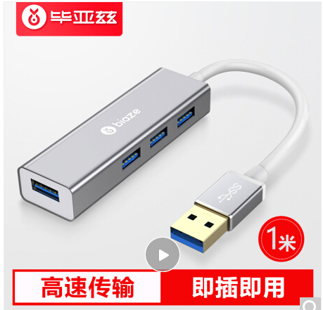 商品名称:毕亚兹 USB分线器3.0接口 1米 高速4口HUB扩展器 笔记本/平板电脑台式/车载通用一拖四集线器 HUB4-金属银