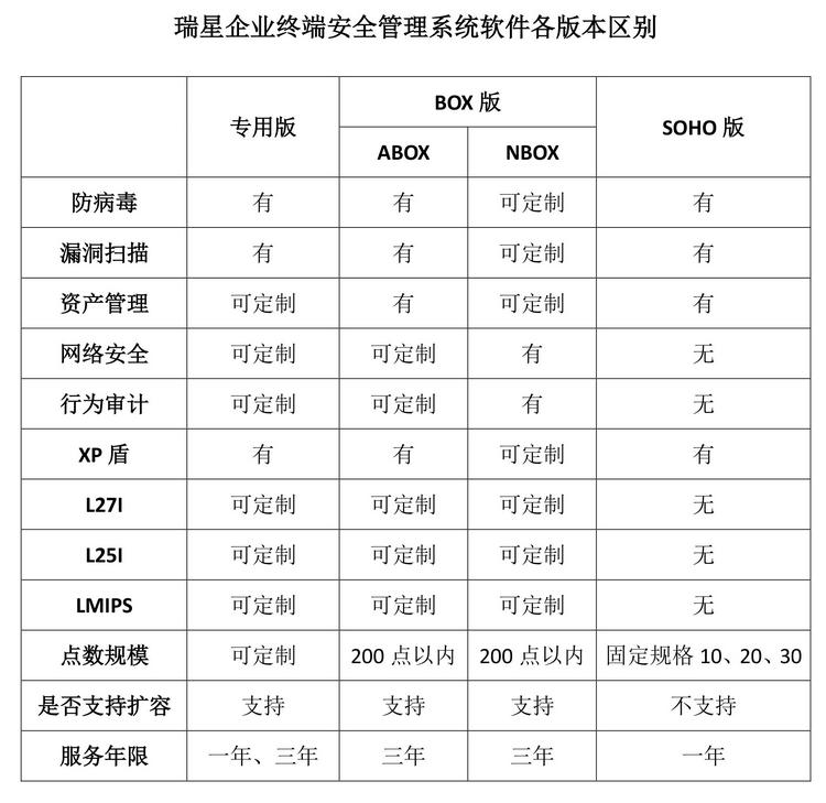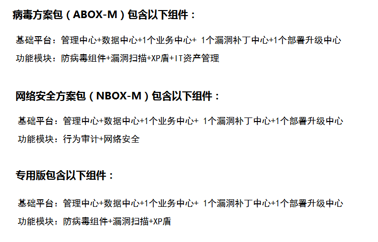 商品名称:瑞星 企业终端安全管理系统软件 网络版 病毒方案包ABOX版本 含三年升级服务简体中文版 90用户
