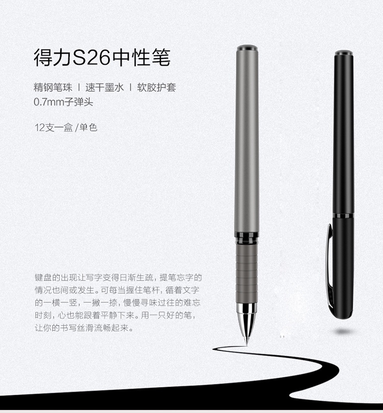 商品名称:得力(deli) S26 拔盖式中性笔 黑色0.7mm