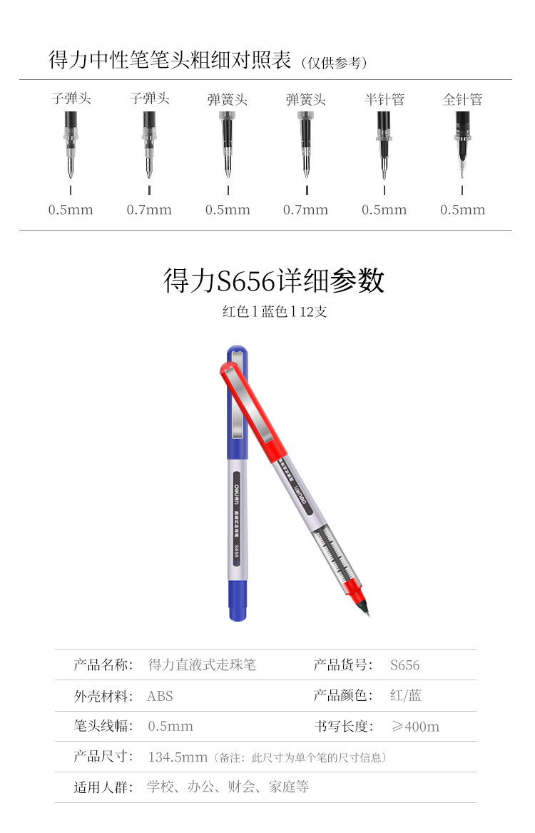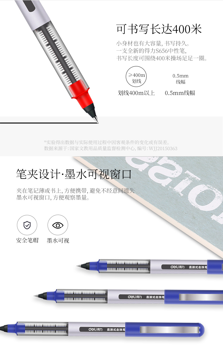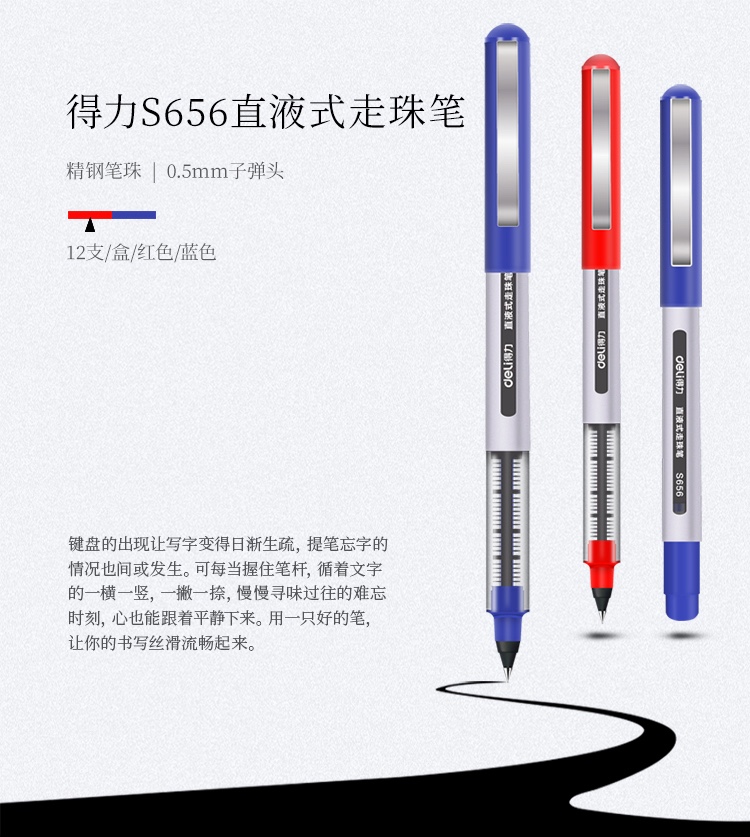 商品名称:得力(deli) S656蓝 直液式走珠笔