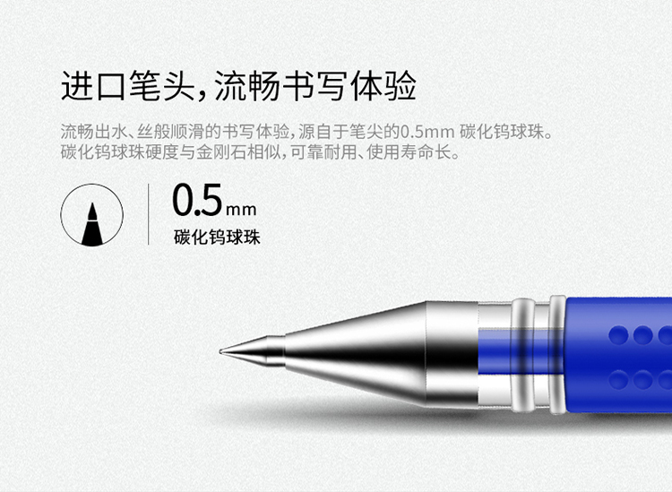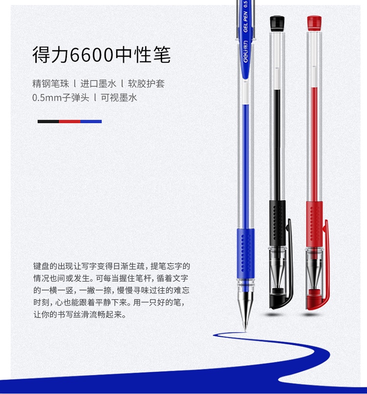 商品名称:得力(deli) 6600ES 经典办公子弹头中性笔0.5mm 蓝