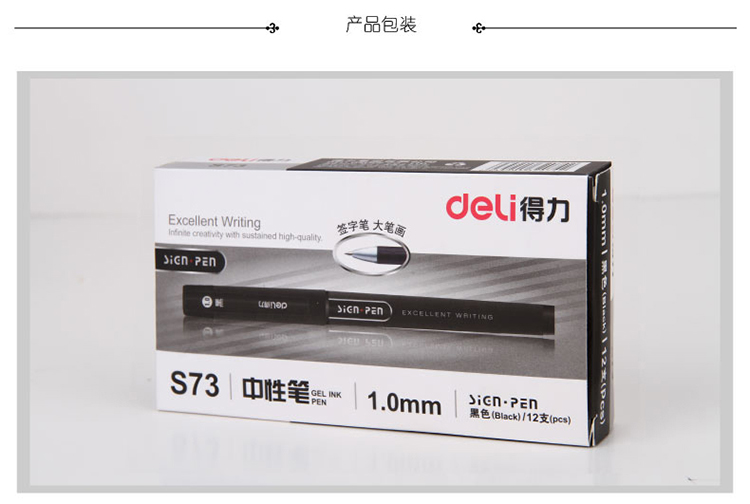 商品名称:得力(deli) S73 签字笔 中性笔 黑色 1.0mm 黑